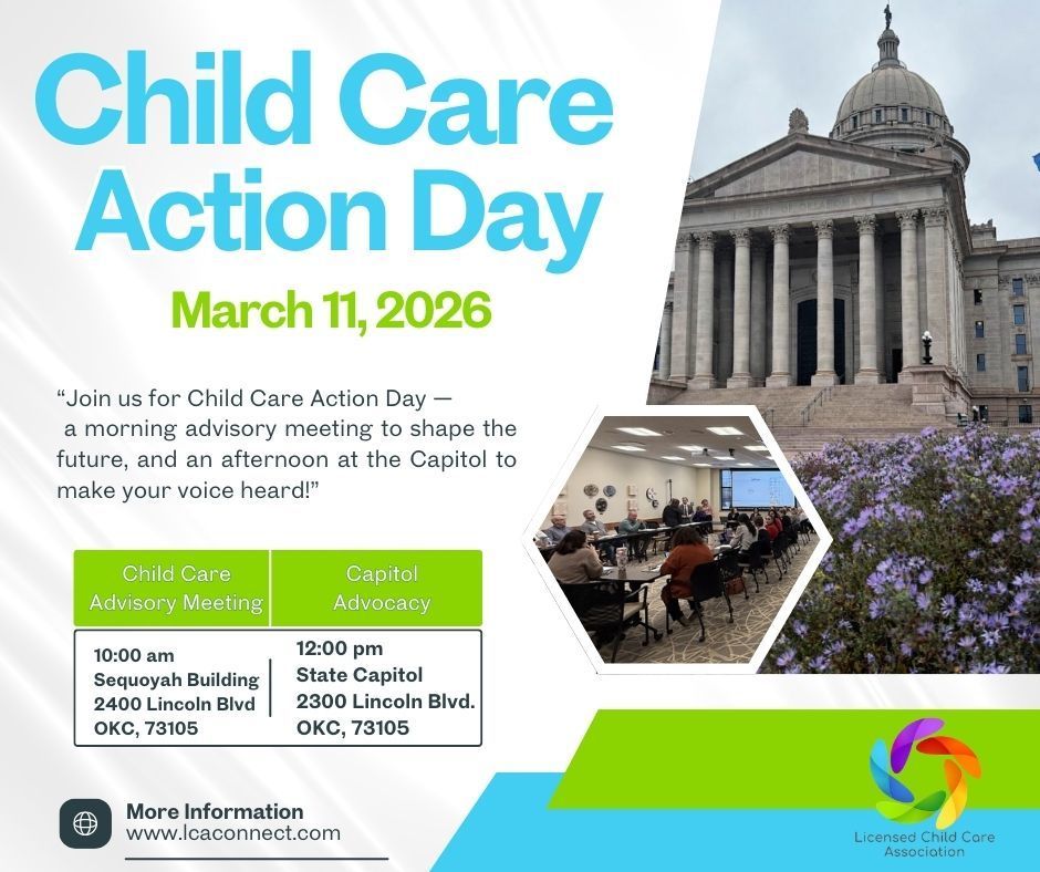 The Licensed Child Care Association of Oklahoma (LCA) is Oklahoma’s largest and most trusted trade association for the child care industry. We are a collaborative community of licensed child care professionals, united in our commitment to supporting and empowering programs of all types and sizes across Oklahoma and beyond. We understand the heart and hustle of small business owners, leaders and early educators like you, who nurture young lives while building strong communities, and we’re here to partner with you to ensure your voice is heard and your work is valued.